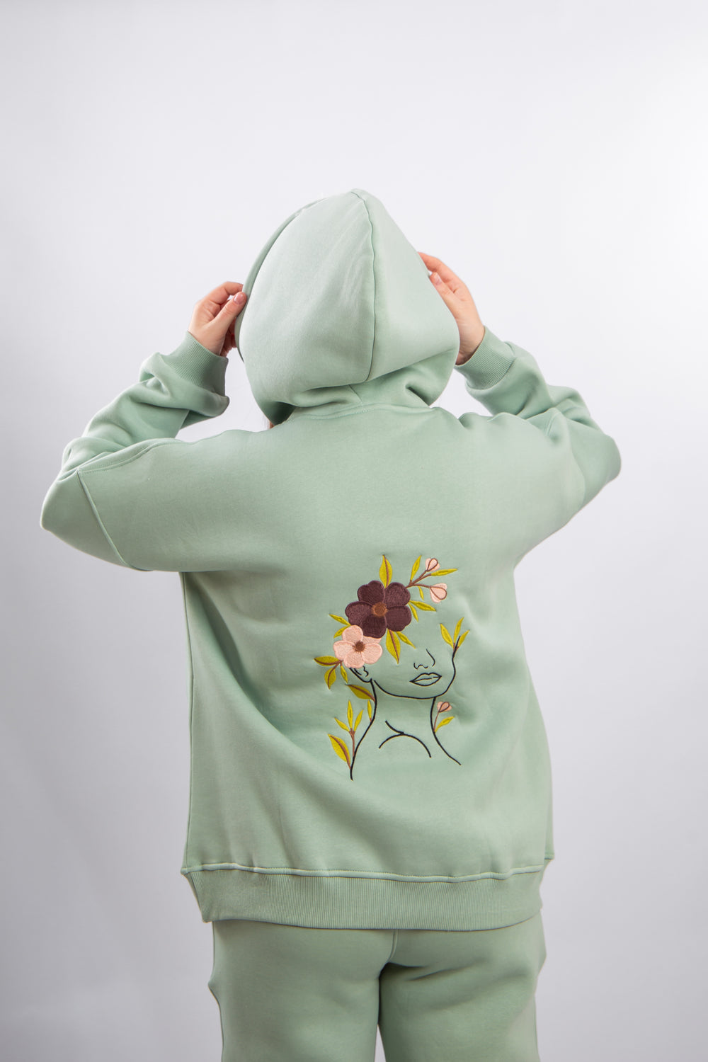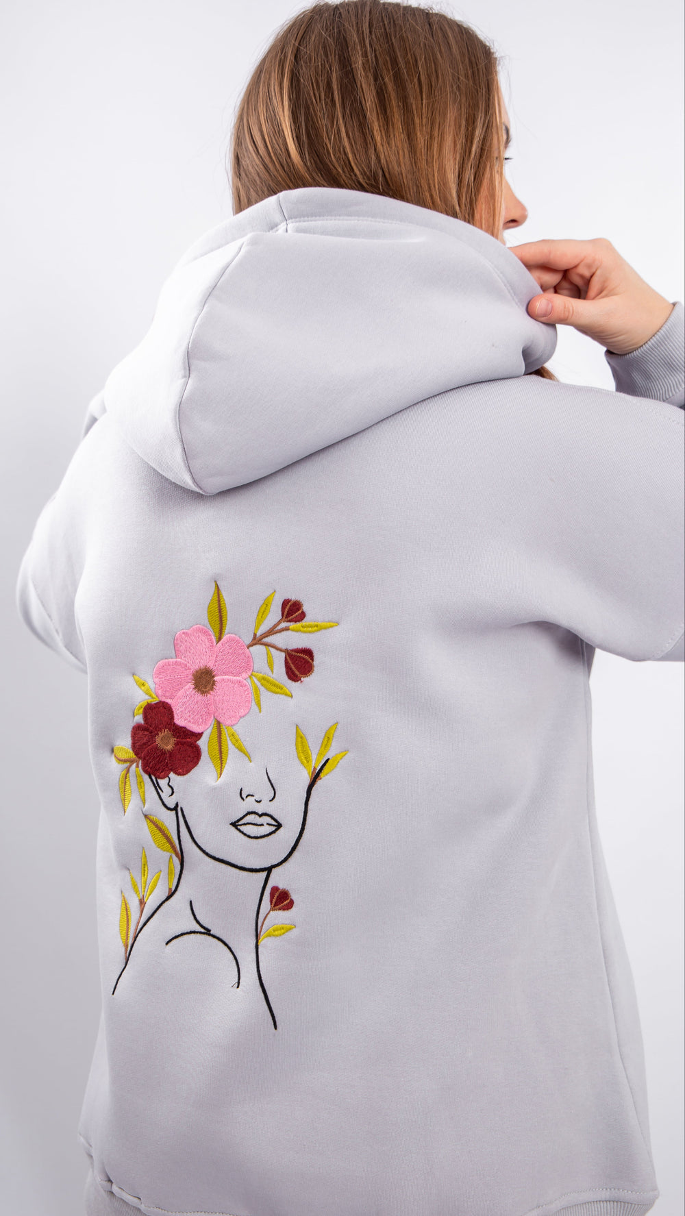 Casual hoodie made from high-quality soft sponge cotton, offering exceptional comfort and a smooth feel on the skin. The fabric is non-pilling and maintains its shape after washing. Features delicate floral embroidery crafted with high precision, adding a subtle feminine and stylish touch to your casual look.