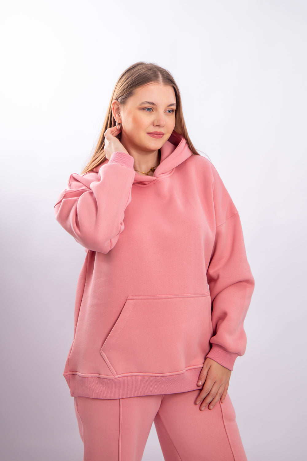 هودي كاجوال مصنوع من قطن إسفنجي ناعم عالي الجودة، مريح جدًا على البشرة ومناسب للاستخدام اليومي. الخامة مش بتوبر وتحتفظ بشكلها بعد الغسيل. يتميز بتطريز أنيق مصنوع بدقة عالية يضيف لمسة أنثوية وعصرية لإطلالتك الكاجوال.