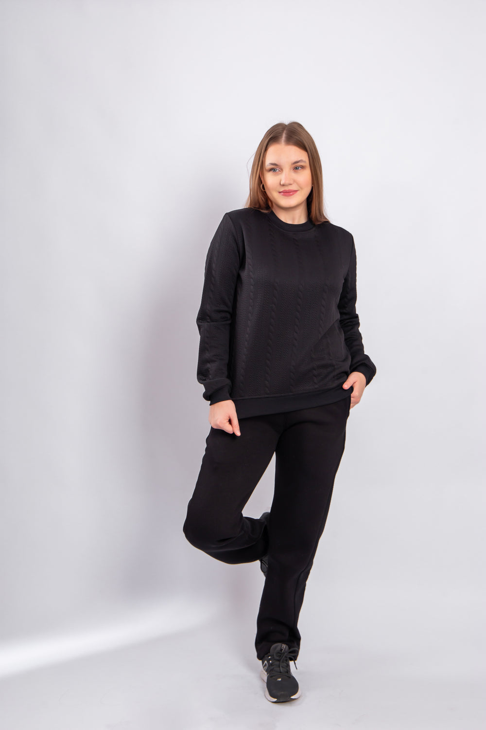نطلون ميلتون ناعم بخامة دافئة ومريحة، يتميز بتصميم أنيق مع قصة جانبية من قماش جاكارد مضفر تضيف لمسة فخامة وعصرية. القَصّة مريحة وانسيابية، مناسبة للإطلالات الكاجوال والرياضية الراقية، سهل التنسيق مع سويت شيرت أو هودي، ومثالي للاستخدام اليومي في الجو المعتدل والبارد.
